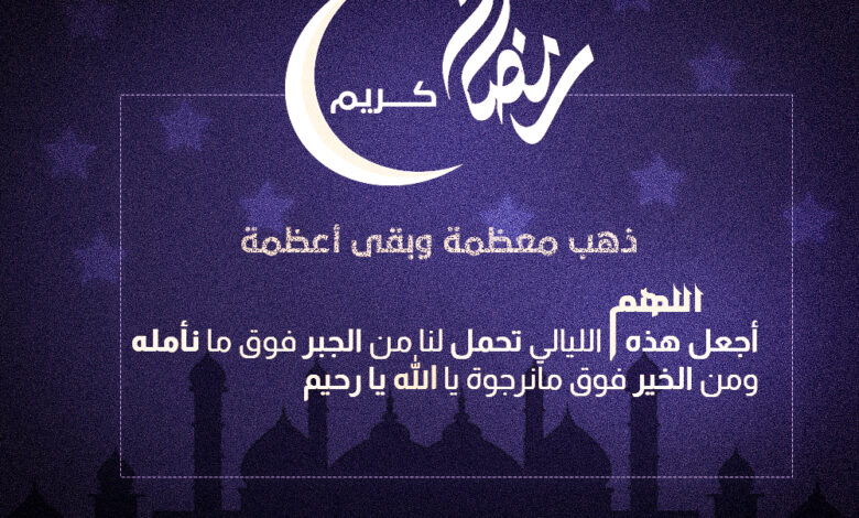 • اللهم اجعل ليلة القدر خالصة لك وحدك، نسألك فيها ببركة العشر الأواخر من شهرك الكريم، اللهم احفظنا ومن نحب من كل مكروه وشر.”